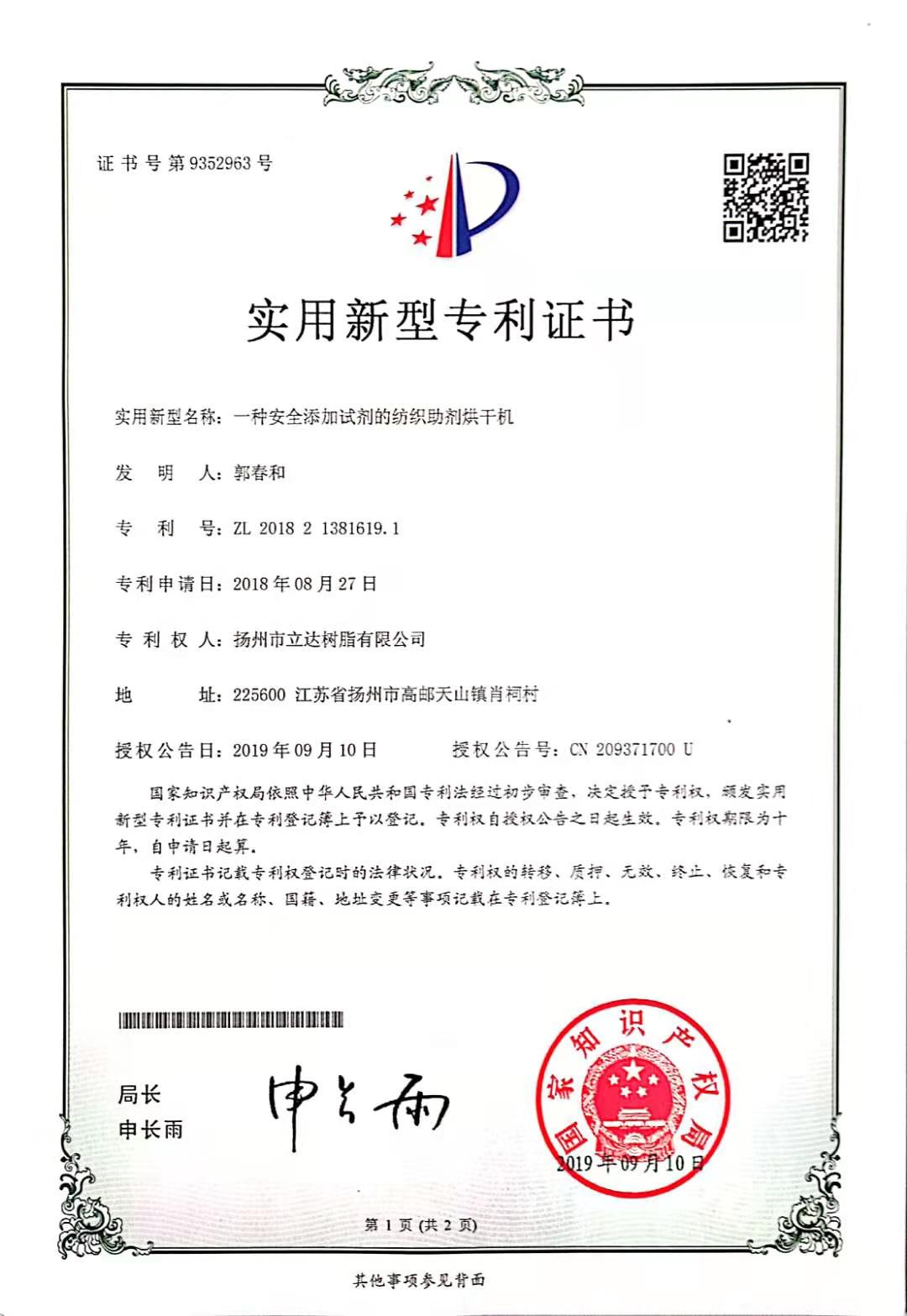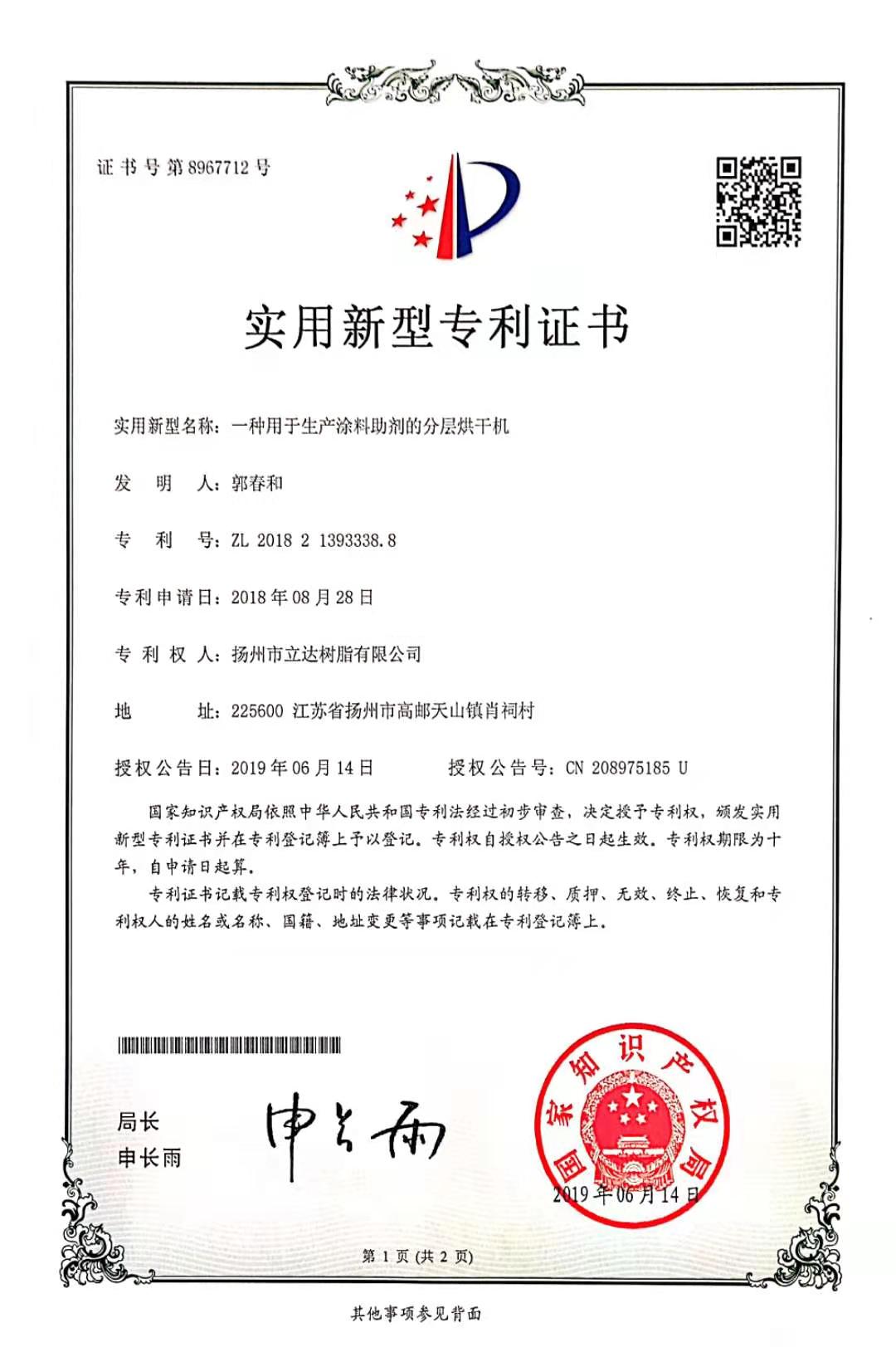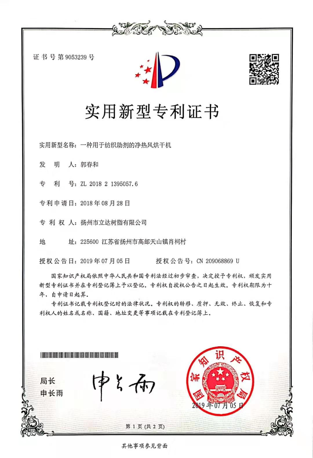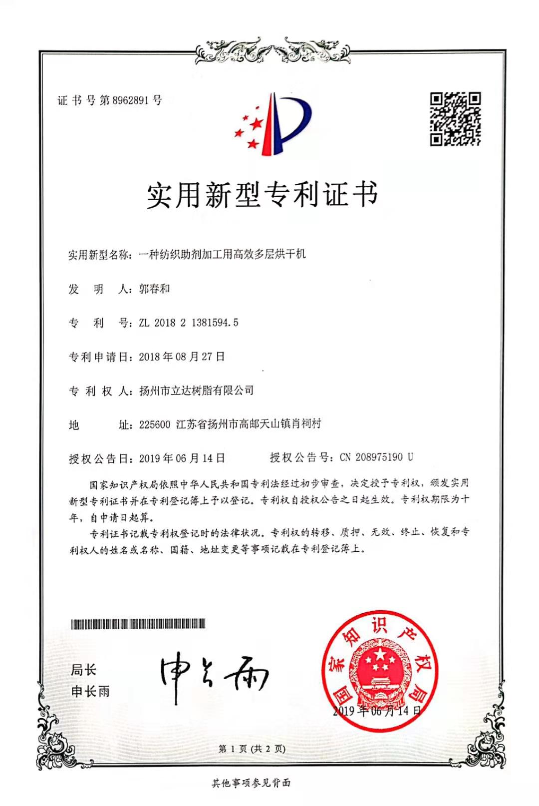實用新型專利證書