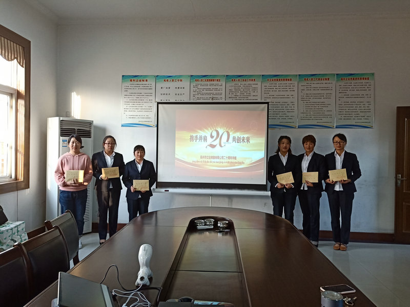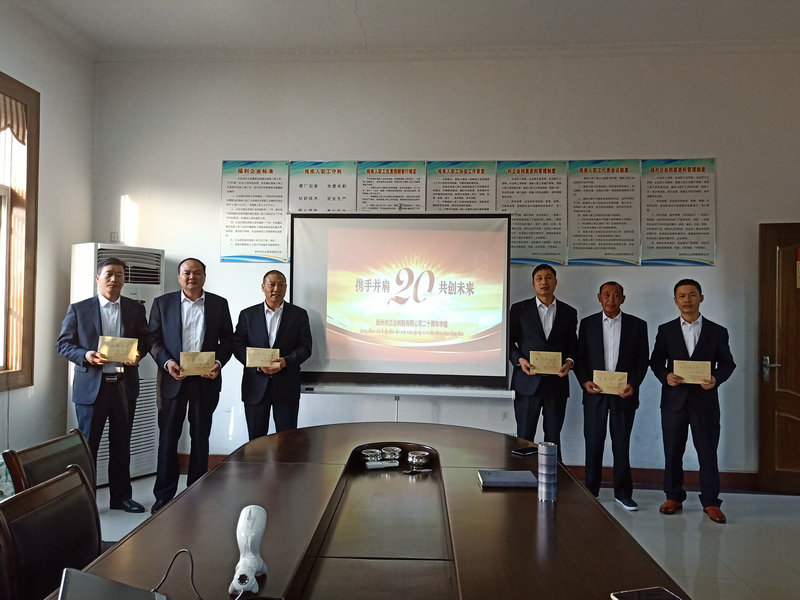 在這一特殊的日子里,公司在會議室召開二十周年總結表彰大會,回首過去、展望未來并發放愛崗敬業獎!會后所有員工合影留念。